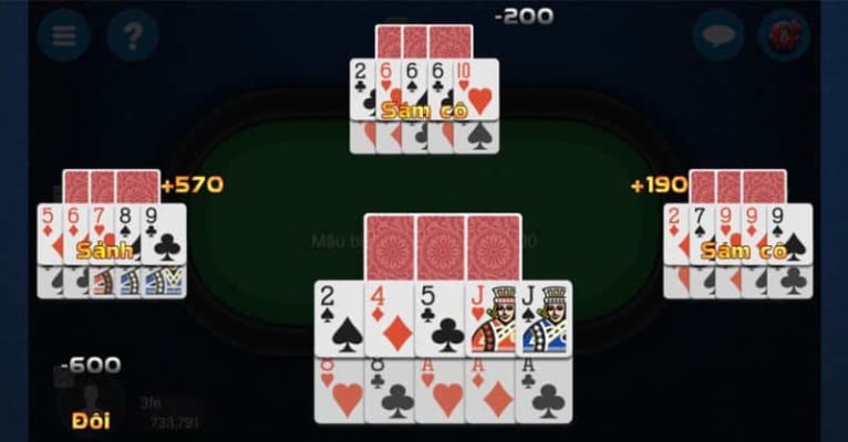 - Three of a Kind (Sám cô): 3 lá giống nhau.